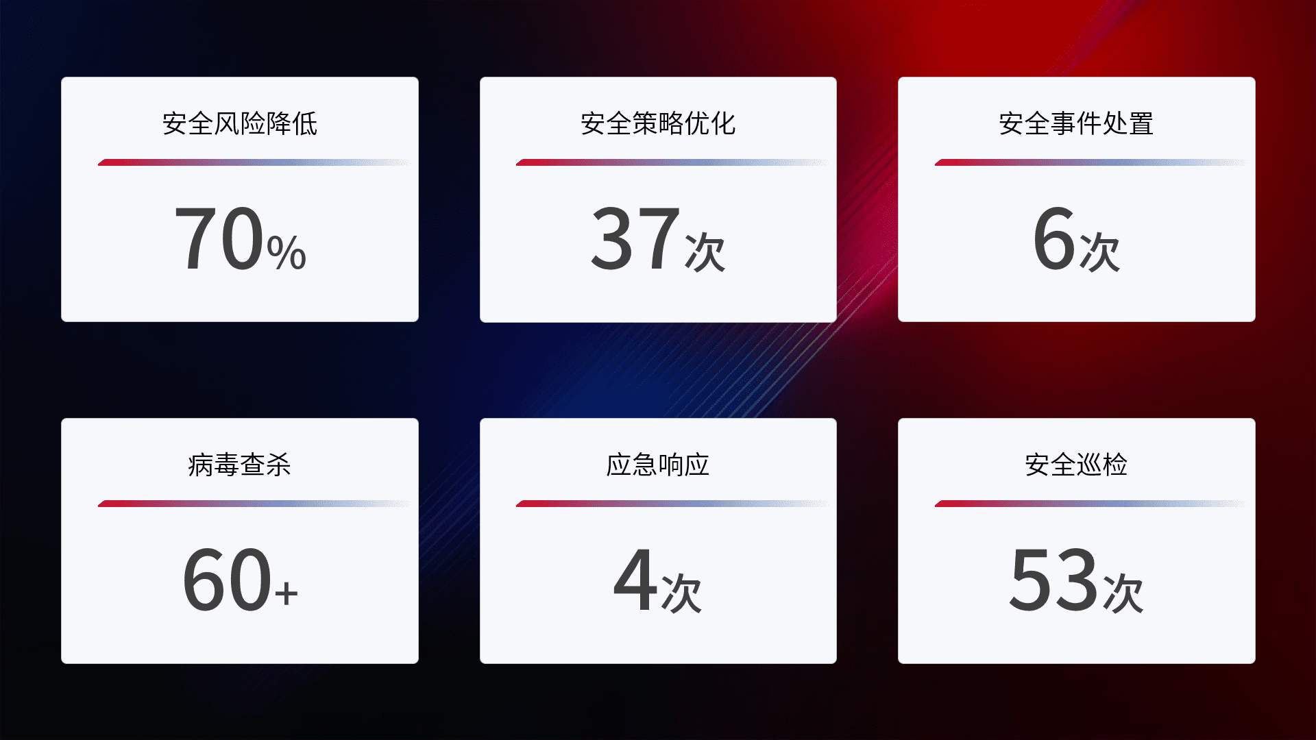 提供全面的安全事件报告体系,,,,包括处置报告、、、、周报、、季度和年度总结,,结合持续监控,,帮助客户深入了解网络安全状况。。。。